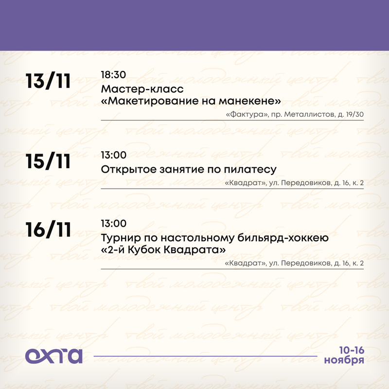 16 ноября, 13:00 — Турнир по настольному бильярд-хоккею «2-й Кубок Квадрата», Дом молодежи «Квадрат», Передовиков, 16к2