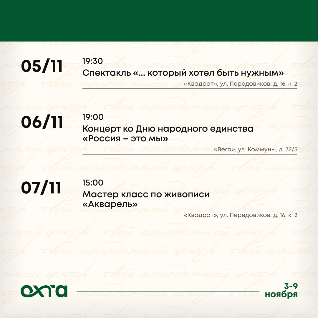 6 ноября, 19:00 — Концерт ко Дню народного единства «Россия – это мы», молодежный клуб «Вега», Комунны, 32к5