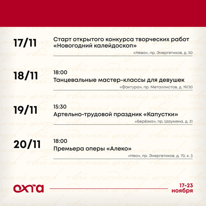 17.11 — Старт открытого конкурса творческих работ «Новогодний калейдоскоп», молодежный клуб «Нева, Энергетиков, 50