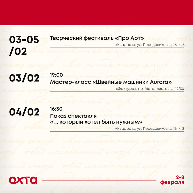 3.02, 19:00 — Мастер-класс «Швейные машинки Aurora», молодежное пространство «Фактура»